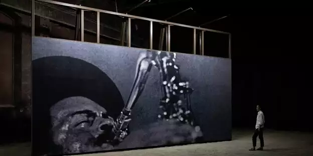 Ein Genuss sind auch die virtuosen Interpret*innen des Ensembles, die, über den Zuschauerraum verteilt, durch ein dezentriertes Raumgefühl Hörgewohnheiten hinterfragen. Nach einem kurzen Spaziergang über das Kulturforum, vorbei an der Baustelle für das gerade entstehende Museum der Moderne, wirkt die Ansicht der Neuen Nationalgalerie wie eine Übersetzung der Fotografien von Candida Höfer in die Dreidimensionalität, neu gesehen aus ihrem Blickwinkel. Doch nicht wie bei Höfer menschenleer. Im Gegenteil, immer noch – oder wieder? Schlangen vor dem Eingang. Für ein Fest der Kunst.