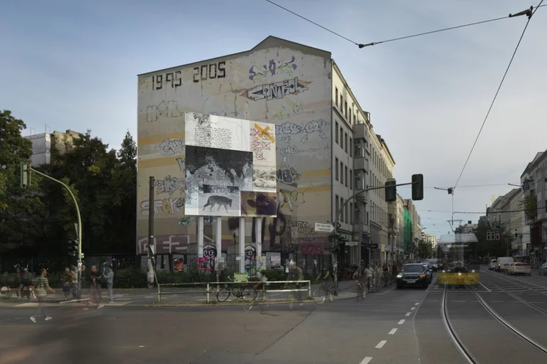 Bekannt geworden mit der Performance-Serie Crawls" seit den 1970er Jahren, thematisiert der Dramaturg, Dichter und Künstler William Pope. L in satirisch überspitzten Performances, Installationen, Schriften und Zeichnungen strukturelle Diskriminierung marginalisierter gesellschaftlicher Gruppen aufgrund von Hautfarbe, Geschlecht und Klasse. Seine Arbeiten erzeugen Unbehagen und Scham. Für den Berliner Schinkel Pavillon hat Pope. L seine Installations-Performance "Contraption" konzipiert - ein Begriff, der für eine Maschine oder ein Gerät steht, das unnötig kompliziert erscheint und oft schlecht gebaut oder unsicher ist. Diese, vorgeblich nach einer simplen Bauzeichnung von Pope. L gestaltete, raumgreifende Maschine schreddert Architektur-Holzmodelle, welche dem Schinkel Pavillon, dem Humboldtforum und der Neuen Wache nachempfunden sind, während die Besucher*innen aus dem Fenster parallel die Originalbauten sehen können, die für die imperiale, koloniale Machtästhetik Preußens und des deutschen Kaiserreiches stehen. Gebaut in einer Zeit, in der, parallel zu kolonialer Unterdrückung und eines konstruierten Herrschaftsanspruchs, die Gedanken des Humanismus entwickelt wurden. Gleichzeitig interagieren Schauspieler*innen nach einem vorgegebenen Handlungsablauf, angelehnt an die Kurzgeschichte "Forlesen" des SciFi-Autors Gene Wolfe, mit der Maschine und lesen Pope. Ls Gedicht „Between a Figure and a Letter“ vor: Von „Zuwanderungsideen, herausgekrochen aus dem Arsch der Zeitgenossen“ und vom „dozentiellen“ (Kofferwort aus Dozent und essentiell) Gehabe und der „kalkulierten Ignoranz“ der „Schinkelianer“.